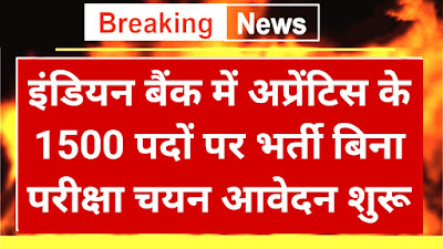 Indian Bank Apprentice Recruitment 2025 :भारतीय बैंकिंग क्षेत्र में रोजगार की तलाश कर रहे युवाओं के लिए एक सुनहरा अवसर आया है। इंडियन बैंक ने वर्ष 2025-26 के लिए अप्रेंटिस की 1500 रिक्तियों हेतु आधिकारिक भर्ती अधिसूचना प्रकाशित की है। यह भर्ती प्रक्रिया देशभर के सभी राज्यों में संचालित होगी, जिसमें इच्छुक एवं योग्य अभ्यर्थी भाग ले सकते हैं।